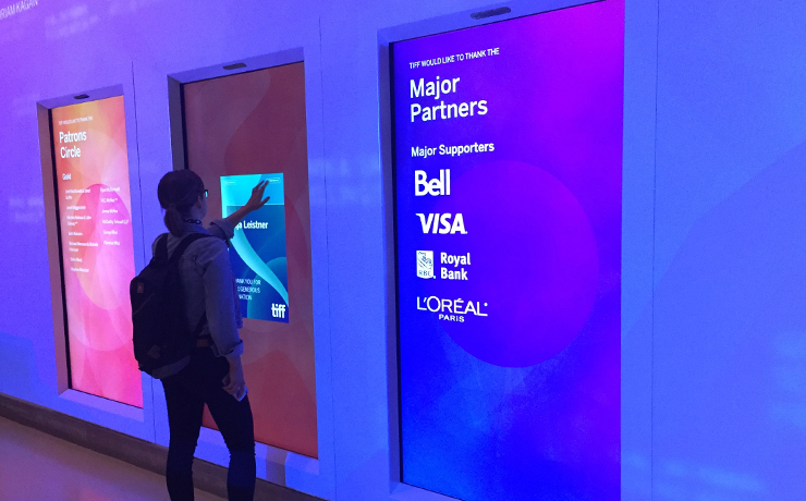 A vibrant, inviting landmark inside the TIFF Lightbox that uses the power of mapping projection, sensors, and touch to honour those that have donated to this world-famous film organization.