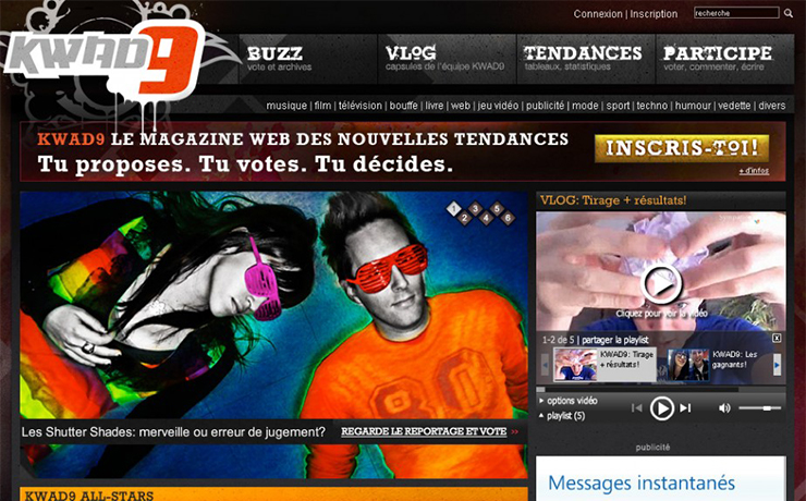 Kwad9 is both a virtual community and a webTV targeting teenagers in Quebec.